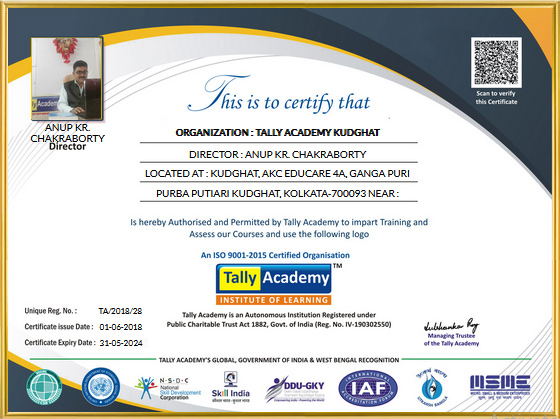 Established in 2005, Tally Academy, India’s one of the most Reputed & Renowned Skill and Talent Development Brand, Tally Academy is an Autonomous Institution Registered Under Public Charitable Trust Act 1882,Govt. of India ( Reg. No. IV-190302550) is also Society Registered (Reg. No. S/2L/47695) W. B. Act XXVI of 1961 .